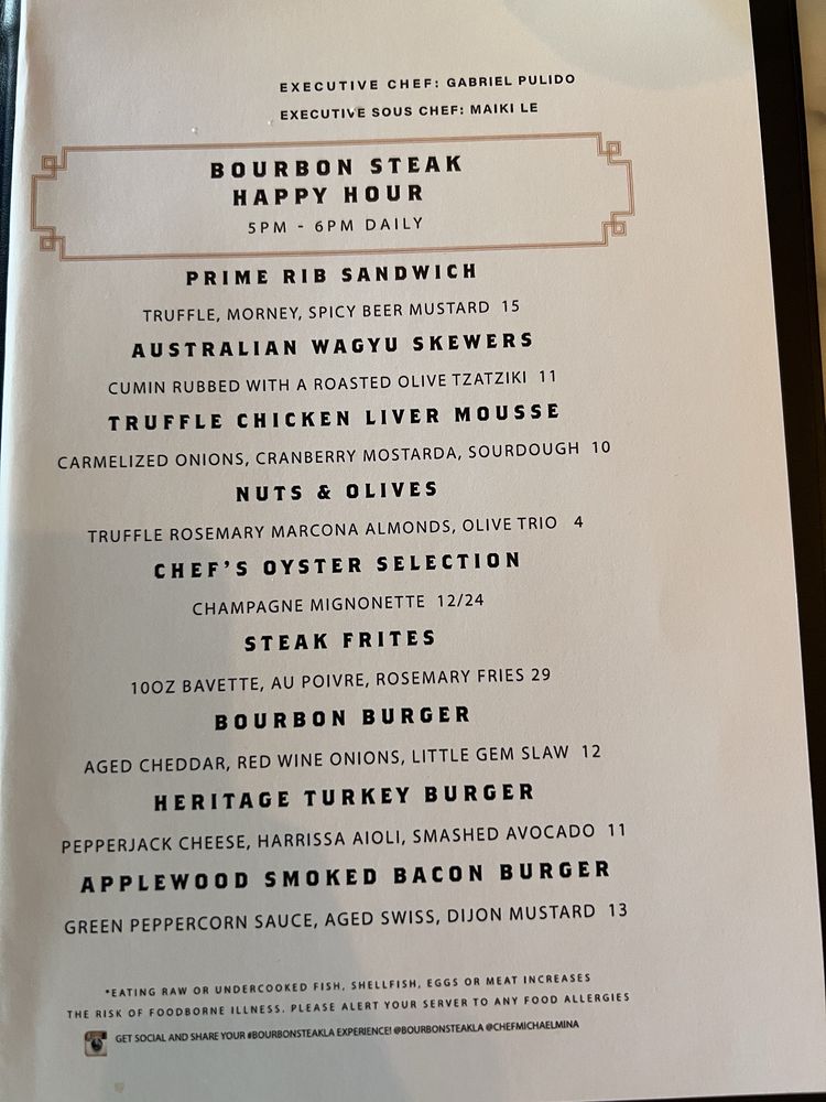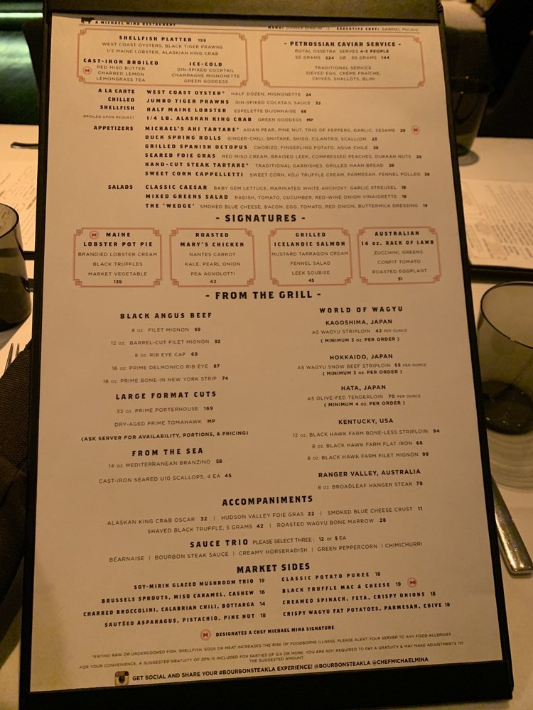 Bourbon Steak by Michael Mina Menu (Update 2025)