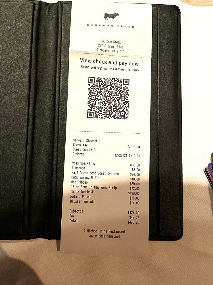 Welcome to Bourbon Steak by Michael Mina, an exquisite dining experience nestled in Glendale, CA, renowned for its superb steaks and vibrant atmosphere. The menu boasts an impressive selection of prime cuts, including the 14oz Prime NY Strip and the rich, flavorful 16oz Delmonico Ribeye, both cooked to perfection. Seafood lovers can delight in the 8oz Icelandic Salmon and Mediterranean Branzino, showcasing freshness and finesse.
